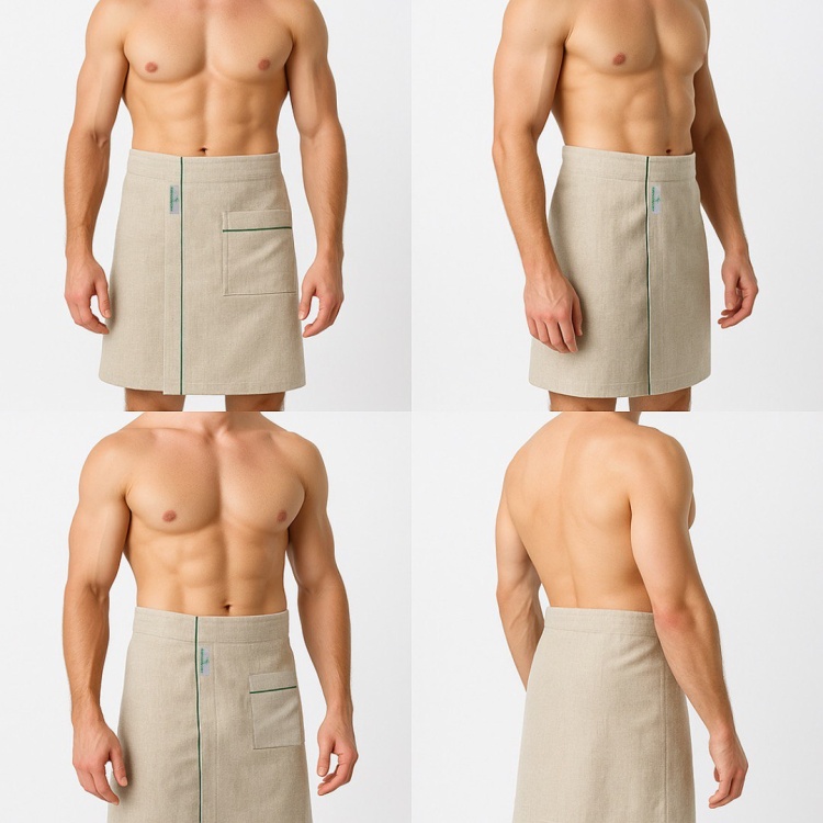 Банный килт из льна — идеальный выбор для ценителей натуральных материалов и комфортного отдыха. Изготовлен из 100% льна, он отличается легкостью, высокой воздухопроницаемостью и отличными влаговпитывающими свойствами. Льняная ткань быстро сохнет, обладает антибактериальными свойствами и прекрасно подходит для использования в парной или после душа.